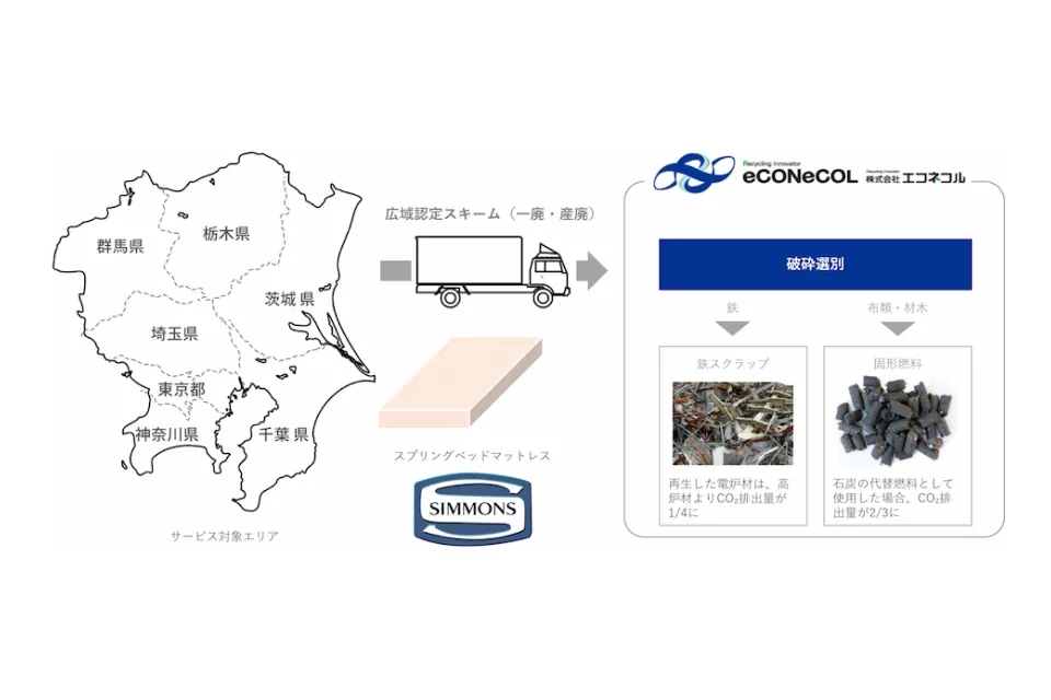 • 広域認定制度の活用による廃マットレスの回収100%再資源化